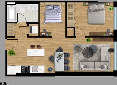 -2 Bedroom units range from 827 sq ft - 868 sq ft