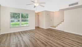 Beachside living in this desirable end unit with fountain waterview. Townhouse has hurricane rated windows, three newer glass sliders, wood laminate flooring on the first level, white shaker cabinets in the kitchen. Two master suites upstairs, each has it's bathroom and a balcony. 1/2 bath downstairs. New washer and dryer. New porch screening upstairs and downstairs. End unit has natural light and more privacy. Feed the turtles, ducks and fish in your backyard! The complex boasts a beautiful marina, mature oaks and lots of sidewalks for quiet walks. Townhouse is in a great location, close to PAFB and the Pineda Causeway.