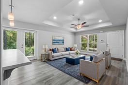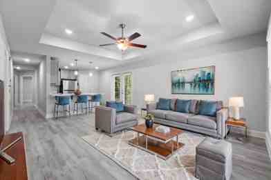 Welcome to this adorable Craftsman-inspired single-family home that feels almost brand new & offers the perfect blend of comfort, style, & convenience. This 3 bedroom, 2 bath home features a spacious roommate-friendly floor plan designed for both privacy & functionality. The modern kitchen shines with tall grey soft-close cabinets, stainless steel appliances (including refrigerator), & an open design that flows into the family room. Step outside to enjoy a private patio & fenced backyard—perfect for relaxing or entertaining. Luxury vinyl plank flooring runs throughout for a modern, low-maintenance lifestyle. A separate laundry/mudroom with washer & dryer included adds convenience, while a one-car garage & plenty of parking make this home practical & inviting. Located in a quiet, charming community just minutes from interstates, shopping, & dining. Move-in ready with all appliances included. Don't miss this incredible value! Contact us directly for availability 850-943-0022.
