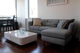Fully furnished two bedroom + two bathroom apartment in the heart of downtown. Available for rent beginning September 1, 2020.