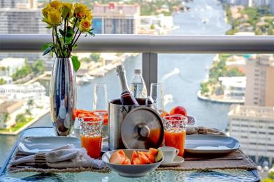 One of the best units in the building, this spacious 2-bedroom, 2-bathroom penthouse boasts breathtaking panoramic views of the ocean, Intracoastal, and city skyline. Featuring high ceilings, a split-bedroom layout for added privacy, sleek tile flooring, and a massive balcony ideal for enjoying the stunning scenery, washer and dryer.