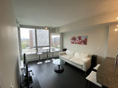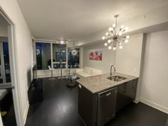 The open concept living/dining room features gourmet kitchen, SS fridge, stove, dishwasher, microwave hood fan, and in suite stacked washer/dryer; 9 ft. ceilings, deep bathtub, floor to ceiling windows, granite countertops and engineered hardwood floors throughout.