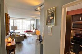 Available Now!! Bright, spacious studio with new luxury vinyl flooring, and roller shade window treatments! Great sitting bar open into the kitchen, Stainless steel appliances, large entry closet, and walk in closet. Beautiful view of sailboats and yachts on the lake, panoramic garden view which also includes a full view of two historic buildings The Edgewater Hotel and The Renaissance. LOCATED ON PREMISES: Heated Indoor Parking available, Heated Outdoor Pool, barbecue picnic area, , Bike Room, locked Storage Unit in basement, 24hr Laundry Room, Dry Cleaners, ATM machine. 24 hr Library with access to two computers with free internet and free Wi-Fi for your laptop.(library soon to be turned into an exercise room), computers and Wi-Fi will stay), and 2 large party rooms for birthday parties or meetings.