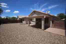 3 bedroom, 2 full bath home in a centrally located, peaceful neighborhood. This home features laminate wood flooring in living areas, bay windows, a bright open floor plan, and a garden style tub, separate shower, dual sinks and an extra-large walk in closet, laundry room includes washer and dryer, 2 car garage, and a large backyard with extended patio. Quick commute to downtown Tucson, U of A, and I-10! Dogs ok!