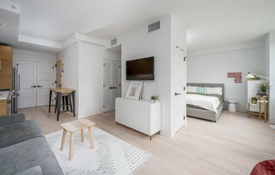 More than just a Studio... Can be rented furnished or unfurnished. NO FEE. When you move into 10 Provost, you're not just moving into a home, you're moving into a community. A community with over 27,000 sq ft of amenities space. The welcoming floor plan of this tremendous studio will instantly make it your home sweet home. Walk in to the galley kitchen, where with the top of the line Bosch stove you can cook to your heart's (and your stomach's) delight. Easily take care of the dishes with the 3 rack Bosch dishwasher. Don't feel like cooking? Not a problem when you live in the Power House Arts District where there are more amazing food options than days in a month. East Flower today, Tony Baloney's tomorrow, and Cava the next day. All within a 5 minute walk. Any day of the week can be the weekend when you live at 10 Provost. Enjoy an evening on the roof deck by the fire pit with a glass of Rose. Of if you're feeling chilly, go down a level to the Penthouse Sky Lounge with panoramic views to the North, East, and South. Watch your favorite show one of the three tvs, or get competitive at the shuffleboard table. As if this wasn't enough space to play or relax, the 7th floor is where the fun really amps up. Three gas grills, a fire pit, a pool, a gym (Make them gains!), a party room, and so much space for friends to gather. You'll never feel cramped for space when entertaining friends, when you have so much space to entertain. This condo building is only 2 years old. Owner is Covering Fee!