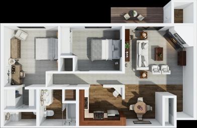1 and 2 bedroom townhome apartments from $1,304 to $1,584.