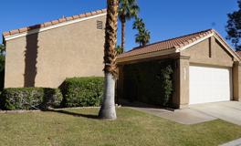 Available March 2026. Two bedroom, two bath home in the gated community of Golden Sun Estates Palm Desert. This home features solid flooring throughout, cathedral ceilings, fans, and two private bedrooms on each end of the home. Main bedroom features an en suite bathroom and access to the covered patio. Washer and dryer connections inside the home. Two car garage. Community amenities include swimming pools, hot tubs, and tennis courts. Sorry, no pets.