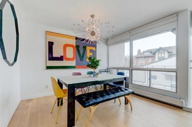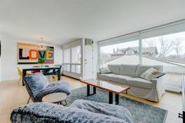 rare furnished condo rental in award winning iconic Executive House. Concrete and steel construction, very quiet. 1 covered parking stall, free laundry, water and electricity included. view of Munson Park you will not get elsewhere, steps away from Peanut Park, close to all matter of conveniences . window coverings, A/C unit, floor to ceiling picture window wall, beautiful
