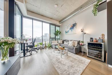Step into a bright and stylish 1-bedroom suite designed for modern city living. Expansive windows fill the home with natural light, while 9-foot exposed concrete ceilings create a bold, loft-inspired feel. Thoughtful design continues with a generous walk-in closet and a sleek kitchen featuring premium built-in appliances including a brand new Bosch stove and contemporary finishes. The result is a space that feels both refined and comfortable. Residents of River City 3 enjoy resort-style amenities including a fully equipped fitness centre, outdoor pool, and dedicated yoga studio. Set in an unbeatable location near the Distillery District, St. Lawrence Market, Leslieville, parks, and downtown, this unit offers exceptional lifestyle value. Parking available for additional cost.