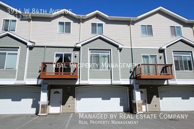 Make sure to watch the walkthrough video. If you don't see a link above, search "Real Property Management Last Frontier" and click on Search Rentals at the top. It's worth it! Upscale townhome located in the highly desirable Sand Lake area. Deep two garage with plenty of storage shelving and room for those Alaskan toys. As you enter the front door, the first thing you'll notice is the marble tile floors and deep entry closet. On the second story you'll find the open concept living area. The wide kitchen offers plenty of room for two people without bumping into each other. Stainless steel appliances, solid surface countertops, and tall cabinetry give it a high end feel. The dining area, while separate from the living room doesn't feel closed off. The living room is bright and calming and the combination of the breakfast bar and half bath will lend themselves to entertaining well. All three bedrooms and both full bathrooms are on the top story. The master suite is spacious with light coming in from two large windows. Master suite has it's own full bath and large walk-in closet. The additional two bedrooms each share a full bathroom with dual vanities.