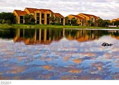 Welcome Home to Paradise! Lovely 1/1 first floor condo overlooks pool and lovely tropical landscaping. Ground floor condos do not last very long. This home features a spacious open floorplan with light toned wood look tile flooring in all areas. The master has a large windows to let in a lot of light and a walk-in closet and a second walk-in closet on the way to the bath of off the hall. The living room with dining area opens to the lanai where you can relax and enjoy your beautiful view. This is an end unit so you do not have the noise and traffic that you would have off of the interior hallway. There are 2 pools, one of which is heated, the other is a salt water pool for those that prefer the salt water, a Jacuzzi, tennis and pickleball courts, basketball, grilling areas, fitness center, library/card/hobby room and car care area. The rent includes Internet and Cable. Eagle Ridge has a great public golf course, so you can golf without high monthly fees. Memberships are available offering discounted rates if you want to join. This community is located with easy access to Interstate 75, the airport, beaches, Colleges, fine dining and excellent shopping. The warmth of the wonderful neighbors in this community is as important as the warm weather. Call for private viewing.