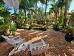 LIVE LIKE YOU'RE ON VACATION YEAR-ROUND at one of downtown Delray's most coveted escapes in the heart of Delray Beach. Just two blocks from vibrant Atlantic Avenue, this lush, private oasis feels worlds away. Resort-style grounds feature a sparkling pool, tiki bar, fire-pit lounge, fountains, tropical gardens, and BBQ area. Inside, enjoy 600 sf of airy open living with soaring ceilings, rich wood floors, a chef's kitchen with stone counters, walk-in cedar closet, and spa-inspired marble bath. Second-floor residence with French doors, private porch & balcony. Furnished annual or seasonal. No pets.