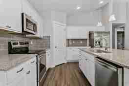 Experience modern luxury in this 2021-built single-level home featuring 4 bedrooms and 2 bathrooms. The standout feature is a rare 4-car garage, providing massive space for vehicles, a workshop, or additional storage. Inside, the open-concept great room impresses with soaring vaulted ceilings and a seamless flow into a gourmet kitchen complete with granite countertops, stainless steel appliances, a large center island, and a spacious walk-in pantry.