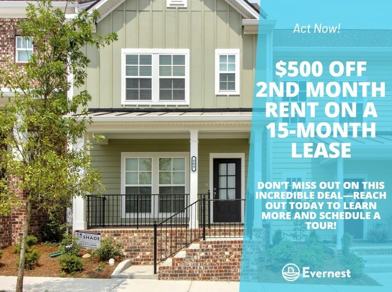 Get $500 off 2nd month rent when you sign a 15-month lease today! Don't miss this opportunity to save big on your new home—limited-time offer.