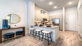 Seated in the burgeoning Midtown District, this five-story community of 344 studio, one-, two- and three-bedroom apartment homes are overflowing with style, action and excitement. What does that mean exactly? It means being inspired by artistic elements including moss walls and chandeliers. It means recharging with a cardio spin room, expansive clubhouse with social kitchen, and zero edge pool. And it means letting your hair down in two courtyards that are alive with activity from the outdoor bar and social space. Your new home will be just as show-stopping and includes wood plank-style flooring, spacious walk-in closets, designer kitchens, and spa-inspired baths with spacious tubs – perfect for soaking any stress away.