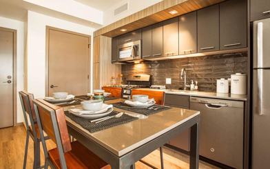Block 17 Apartments offers both a unique location and inspired amenities that re-define and re-invent Pearl District apartment living in Portland, OR. Here are just a few of our community's unique features: custom designed resident lounge, fully functional bike storage, roof deck with views of Fremont Bridge and Historic Centennial Mills, resident-reserved garage parking and much more. Block 17 offers 1 and 2 bedrooms, plus dens and loft-style homes that include quartz countertop & kitchen tile backsplash with handcrafted aesthetic style, GE stainless & slate finish appliances, full size in-unit washer & dryer. Enjoy personalized experiences for truly distinct living in the Pearl District that includes organic food deliveries, dry cleaning services, community group fitness programs, pet services and much more. We are here to serve you virtually.