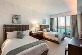 Upgraded luxury studio 2 queen ocean view suite; 16th floor at the Ritz Carlton, foyer entry with midnight coffee bar, sink and mini refrigerator; leather top desk area, plasma tv; glass enclosed rain shower; free standing tub; balcony overlooking the ocean; enjoy 5 star Ritz Carlton amenities: indoor and poolside restaurants and bar, spa, gym. Beachside food, beverage, chaise lounge, umbrella, and towel service. walking distance to world renowned Bal Harbour shops, restaurants, and cafes.
