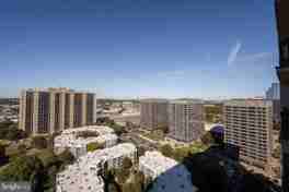 This rare 22nd-floor condo offers stunning views of Skyline Park from two balconies, accessible from both the living room and the kitchen. The spacious layout features 2 full bedrooms plus an enclosed den that can be used as a home office or 3rd bedroom. The kitchen has been fully renovated with modern finishes and new appliances. The condo also boasts beautiful hardwood floors throughout, fresh paint, and large windows that flood the open-concept living and dining area with natural light. The primary bedroom includes two closets-one of them a walk-in-and an en-suite bathroom with a separate shower and soaking tub. New full size washer and dryer in unit. Rent includes 1 covered garage parking space and a storage unit in the basement. A second parking space is available for an additional fee of $150/mo. Skyline Square provides fantastic amenities, including 24-hour concierge service, an outdoor swimming pool, and a fitness center. This prime location is just a 2-minute walk to Target, CVS, Starbucks, and other conveniences, with easy access to multiple bus routes, including an express bus to the Pentagon. It's also close to Dora Kelley Nature Park and offers quick access to 395, Bailey's Crossroads, Alexandria, Shirlington, and National Airport. Please note: pets are not allowed per condominium association rules.