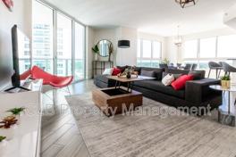 Furnished Luxury 3 bedroom 3 bath skyhome with 2 balconies providing sunrise and sunset views! This unit features beautiful upgraded tile flooring and light fixtures along with closet systems. Marina Grande offers a resort lifestyle with incredible amenities such as 2 pools, movie theater, owners lounge, game rooms, library, 24 hr. fitness center, steam rooms, hot tub, and gated secure entry. HOA will require a secondary application.