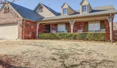 Open floor plan with soaring ceilings, handsome brick fireplace. Spacious kitchen with center island, breakfast bar & eat in area. Large back yard with privacy fence, big patio and front porch. Neighborhood park, pool & ponds. Jenks SCH District. Great location near shopping, dining & close to turnpike for easy commute. Cool off in the Wakefield Community Pool and amenenties for the summer! Text Cristy 918-808-7651