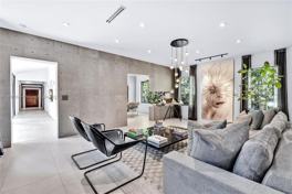 Enjoy a magnificent primary bedroom with a secluded patio and the exquisite touch of a custom-made primary closet/bathroom, along with two generously sized bedrooms boasting full bathrooms. Revel in the 11ft high ceilings, Italian ceramic floors, and Mia Cucina custom kitchen & closets. The property's window walls flood the space with natural light, while the wooden pool deck and lush landscaping create the perfect retreat. Nestled in a beautiful and safe neighborhood with no thru traffic, this home offers an exceptional living experience in an unbeatable location