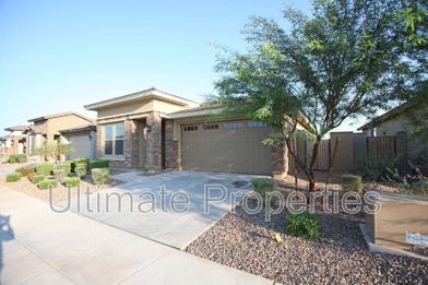 Pet Friendly3 bedroom + 2 bathroom home in located in Marley Park. Open floor plan. Tile throughout, carpet in the bedrooms. Beautiful kitchen features walk in pantry, tiled back-splash, kitchen island and all appliances - stainless steel refrigerator, built-in microwave, dishwasher, gas range/oven. Master suite features HUGE walk in tiled shower, walk in closet, separate tub and shower, dual sinks. Washer and dryer are also included! Large backyard features covered patio, extended paved area, and artificial turf. 2 car garage