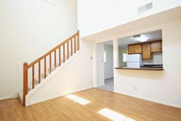 The 1,792 sqft two-story home offers carpet and vinyl flooring, a sunny vaulted-ceiling living room, and an open kitchen with wooden cabinets and white appliances. The main floor offers two bedrooms and a full bathroom off the hallway. Upstairs, you’ll find two more bedrooms, a versatile fifth bedroom or home office (no closet), another full hall bath, and a laundry room equipped with a full-size washer and dryer. The property includes two dedicated off-street parking spaces directly in front of the home, with additional street parking available on a first-come, first-served basis.