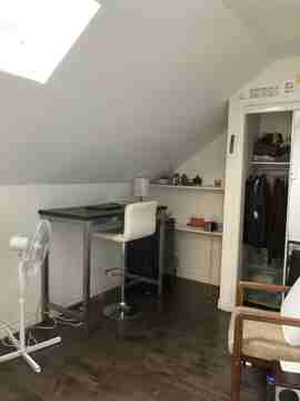 The room itself has a large closet and a skylight which illuminates the room very well.