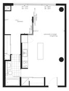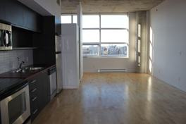 Le loft est au huitième étage et a des gigantesques fenêtres qui sont orientées à l'ouest, laissant entrer beaucoup de lumière directe. Une chambre fermée, planchers en bois, des hauts plafonds 10'6" (3.2 m) et colonnes de béton exposées. Climatisation centrale, électroménagers en acier inoxydable, incluant un réfrigérateur, une cuisinière en vitrocéramique, un four micro-ondes en haut de la cuisinière, un lave-vaisselle et une laveuse/sécheuse.