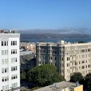 -Sweeping northern views from the living room and master bedroom of the bay, marina, Alcatraz and Golden Gate Bridge