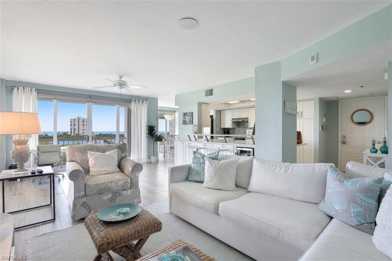 New in Demand available dates January- March 2026! Enjoy stunning sunsets and panoramic views of Clam Pass and the Gulf from this bright and sunny 5th-floor end unit in St. Tropez. This 2-bedroom + den, 2-bath beachy retreat is filled with natural light and beautifully furnished with coastal-inspired designer updates. St. Tropez offers resort-style amenities including a sparkling pool, spa, fitness center, social room, grills, and private beach access via boardwalk and tram. Ideally located just minutes from Waterside Shops and Artis–Naples. As a Pelican Bay resident, enjoy exclusive beachfront dining, tennis, pickleball, and a state-of-the-art fitness center. Turnkey, stylish, and ready for you to move in.