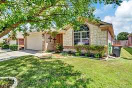 Beautiful 1 story 4 bedroom home! Beautiful drive up appeal includes stone façade and stone border around front beds. Large front room that can be used as formal living and dining or a large family room. Great for entertaining, the house also boasts an open kitchen flowing into 2nd living room. Kitchen has granite counter tops, an island & built-in desk. Master suite is connected to the fourth bedroom with french doors and would make a great nursery, sitting room or study. Additional updates are laminate wood flooring throughout living spaces, newer carpet in bedrooms, updated light fixtures & ceiling fans throughout, additional exterior lighting around garage. Covered oversized back porch also!