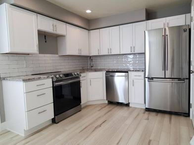 Completely remodeled with new Lvp flooring, shaker cabinets, granite counters, and stainless appliances. Remodeled bath, newer carpet, and paint. Large bedrooms, central Ac, huge private backyard, and attached oversized 1 car garage. Just steps to the light rail and short drive to Belmar, Edgewater, Sloan's Lake, downtown Denver, and LoHi.