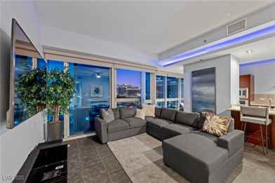 Modern design meets iconic Las Vegas Strip views! Experience luxury highrise lifestyle at one of the most sought after building, The Martin. This 11th-floor north Strip-facing residence features floor-to-ceiling windows with stunning views of CityCenter, Bellagio, Caesars Palace, the city, and mountains. This 2 bed, 2 bath, and den home offers upgraded porcelain floors, custom closets, motorized blackout drapes, and a spacious living room with color-changing tray ceiling lighting. The kitchen boasts stainless steel appliances and ample storage, while the den has been converted into a cozy movie room with recliners. The Martin offers 24-hour concierge, security, valet, car service, fitness center, resort-style pool and spa, men’s and women’s spa with sauna and massage room, business center, and library with coffee service.
