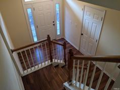 Spacious Townhome with 3 floors, 3 bedrooms, 3 full baths and a half bath! All the bedrooms have ensuite full bathrooms including one bedroom on the basement floor. Luxury Vinyl Plank flooring flows through the whole house! No carpet! Middle floor is living area with kitchen open to dining area and living room with gas fireplace and 2 sliding doors leading to deck for great natural light. Kitchen has lots of countertop and cabinet space with stainless steel appliances. Top floor has the primary bedroom with large bathroom and walk in closet and 3rd bedroom with full bath. Community Pool! 1 Car Garage! Close to RTP, Morrisville and I-540. Pets Negotiable.
