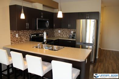 This high-end condo features a large & open-concept kitchen/dining/living area. The kitchen offers ample counter and storage space & comes complete with all the stainless-steel appliances. The upgraded bathroom comes with a one-piece vinyl tub surround. Rent also includes central air conditioning and water. 2 cats are allowed.
