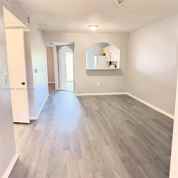 Spacious and well-maintained 1 bedroom, 1 bathroom first-floor unit with a peaceful lake view. The apartment features modern gray wood-style flooring throughout, freshly painted interiors, and a bright open layout that creates a comfortable living space.