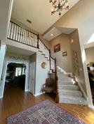 Downstairs: Formal living room/dining room, family room, dining area, large kitchen, master bedroom suite, half bathroom, office area, and a large laundry room. 2 car garage, golf cart garage space, and driveway.