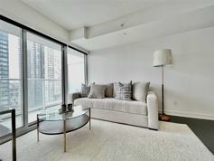 With expansive windows and 9' ceilings, this unit boasts an abundance of natural light and a spacious feel. The spa-like bathroom features a deep soaker tub, while the kitchen includes a marble backsplash and quartz countertop. This unit also offers breathtaking city and lake views.