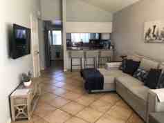 Kitchen consists of all stainless steel appliances, including a refrigerator, beautiful granite countertops and ample storage space that includes a kitchen pantry. For your convenience there's an interior washer and dryer to make doing laundry a breeze! The downstairs bedroom offers 2 twin beds, while the upstairs bedroom features a king-size bed with a private balcony. Inside, you’ll be staying comfortable all year-round with air conditioning and ceiling fans throughout. The detached two car garage has direct access through the large private patio area.