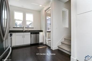 Stylish townhouse newly-built in 2018 with attached garage and central a/c and heating. The main level features a gourmet kitchen with stainless steel appliances, including gas range, dishwasher, granite countertops, beautiful birch cabinetry with Euro-hinges, and recessed lighting. The upper level features the main bedroom with a spacious closet, and the second bedroom, which could be used as an office/study, play, media, or exercise area. Off the kitchen is a cozy balcony. In-unit laundry. Durable flooring. The main bedroom features spacious closet and bath. Centrally-located just minutes to Great Mall, Costco, Ranch 99, and many others. Walk to Mattos Elementary, neighborhood park with tennis courts, playground, community center, BBQ area & amphitheater. Easy access to all commute routes and less than 1 mile to Milpitas Bart station. Join the Farmers Market fun on Thursdays in the guest parking lot! * When touring, park on the street. Guest parking inside the neighborhood requires registration and the HOA does tow unregistered vehicles at the owner's expense.