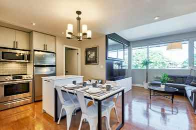 Stunning 1 Bdrm Condo At Exclusive Roncesvalles Lofts Condo, In The Heart Of Super-Hip Roncesvalles! Spacious O/C Layout W Sleek Hardwood Flrs, Pot Lights, & Exceptional Natural Light Through Ultra-Large Living Rm Windows. Sleek Open Concept Kitchen W Stainless Steel Appliances & Convenient Built-in Combined Kitchen Island & Dining Table. Great-Sized Bdrm W Chic Sliding Door, Huge Closet W Built-in Organizers & Large Built-in Shelving Unit. Ensuite Laundry.