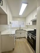 This beautifully renovated 3 bed, 2 bath unit offers a modern and spacious layout with sleek finishes throughout. The kitchen features stainless steel appliances, quartz countertops, subway tile backsplash, and ample cabinet space. The open living area is enhanced by recessed lighting and wide-plank wood-style flooring that flows seamlessly into both bedrooms. The primary bathroom boasts a glass-enclosed shower with stone flooring and dual vanity sinks, while the in-unit washer and dryer provide added convenience. With mirrored closet doors, ceiling fans, and clean, contemporary design, this home is move-in ready and perfect for comfortable living.