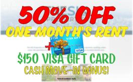 $2,350 (ALL Utilities Included) + 50% OFF One Month's Rent Move-in Bonus !!! PLUS $150 VISA GIFT CARD!!!