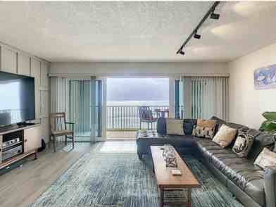 Welcome to your beachside retreat—a beautifully remodeled, top-floor condo with breathtaking direct ocean views. This spacious, fully furnished unit features an open floor plan and a modern kitchen, perfect for relaxing or entertaining. Enjoy brand new sliding doors that open onto a private balcony from both the bedroom and living room, offering stunning views of the sparkling water.