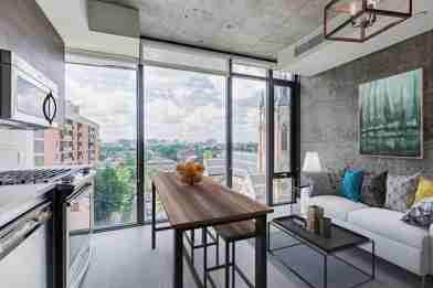 One Eleven Bathurst - 17 Storey Boutique Condominiums In Vibrant King W. The Heart Of The Entertainment District, Restaurants, Cafes, Nightlife & Ttc At Your Door. Denison Suite - 1 Bed Rm Beautiful West Facing Unit. Feats: 9Ft. Ceilings, Exposed Concrete Walls & Ceilings, Floor To Ceiling Windows, Imported European Style Kitchens Featuring Integrated Appliances Including Gas Range, Built-In Microwave, Under-Mount Sinks, And Glass Tile Backsplash.