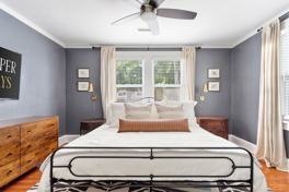 This single level home is the perfect place to come and enjoy your time in Charleston. The master bedroom is beautifully lit from natural sunlight, has a king bed, flat screen TV, along with a ensuite bathroom. The two additional bedrooms have queen beds, one with a small desk space. The additional bathroom, with beautiful gold fixtures, has double sinks, a shower and a tub. The entire home is furnished by an interior designer with new, modern furniture, and always has fresh, quality linens. The beautiful open-air kitchen has room for guests at a dining table, and bar stools. The formal living room has a cozy feel, great for relaxing and watching TV. Patios in front and back of house, including chairs and a hammock! Enough parking for two cars.