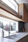 Fireplace, skylight, carpet, hardwood, tile flooring