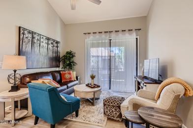 Summer rate $2,300, $4,000 Winter rate. Exceptional 5-star newly remodeled & newly fully furnished 2 BR/ 2 BA guard gated-community Mediterranean-style casita at the Racquet Club. An oasis in the desert, this chic contemporary condo next to the pool is fully furnished & features premium upgrades, new furniture & appliances, superb kitchen, full-size W/D, flat-screen television w/Roku streaming, wireless internet access, & a relaxing patio/deck on the park. Enjoy the amenities of the lake, 5 community pools & 6 spas, the vacation-resort feel of this tennis community, the walking trails, workout room, community center & walking-distance to retail, restaurants, grocery, etc... nearby. High Season at $4,000/m November to April utilities included. Low season at $2,400/m plus power. Rates for 2 persons.