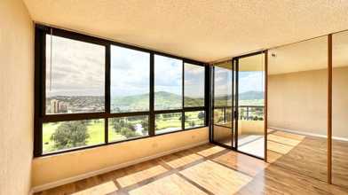 2 bedroom, 2 bath spacious unit with 2 parking stalls (covered and uncovered) at the highly sought after Plaza Landmark building in Salt Lake. The views from this unit are spectacular overlooking Honolulu Country Club, mountain, ocean and city views. Features include vinyl plank flooring throughout for easy maintenance, spacious covered balcony, ac unit in master bedroom and stacked washer/dryer in unit. Unit DOES NOT include a working dishwasher. The building offers a beautiful pool, spa, gym, bbq areas, walking paths and 24 hour security. Easy access to freeway and close proximity to hospitals, airport, grocery, restaurants and Fort Shafter military base. Sorry but no pets and smoking are allowed. Plaza Landmark management charges a one time, non-refundable $100 move-in fee. Renter's insurance required.